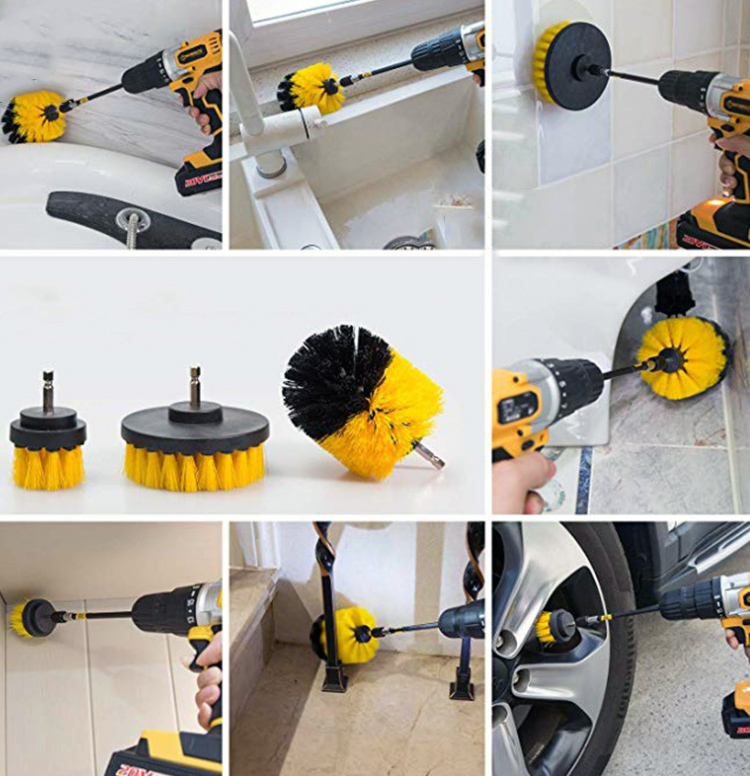 1. The drill brushes are matched to electric drill to use, mainly used for cleaning sink, floor, wall, sofa, carpet, etc., the brush is divided into different sizes, can be single size and can also as a set, price decreases as quantity increases.